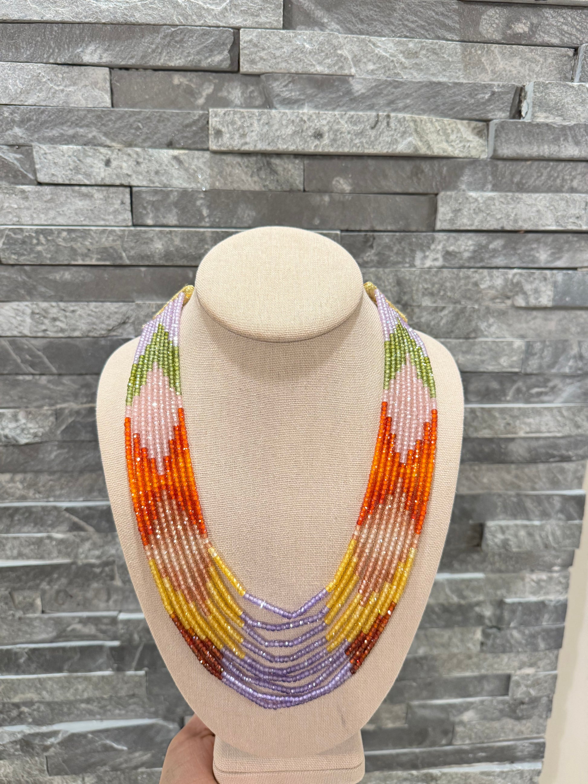 CZ cubic zirconia necklace, multi color necklaces come in 3,5,7,9,11 lines necklaces