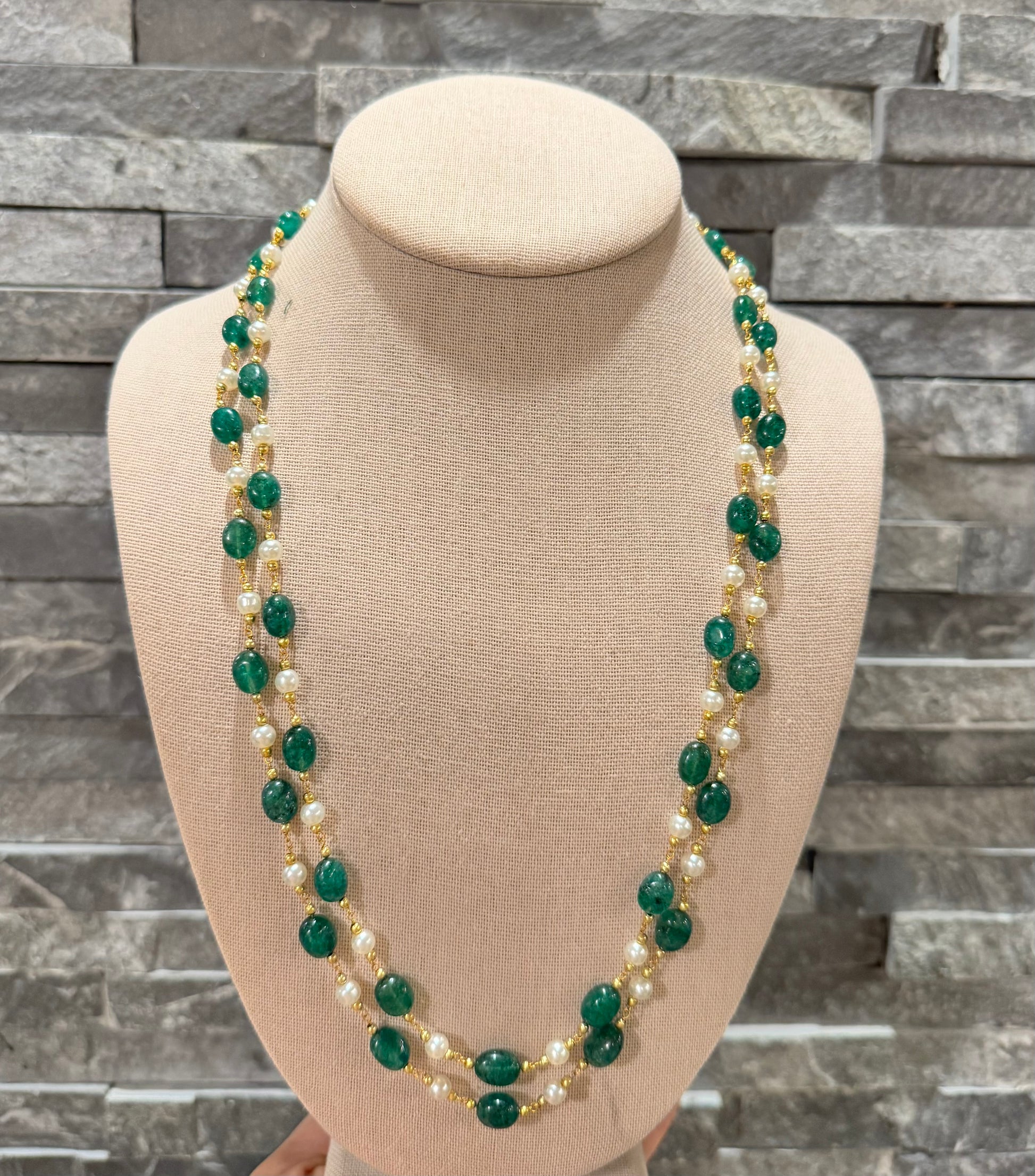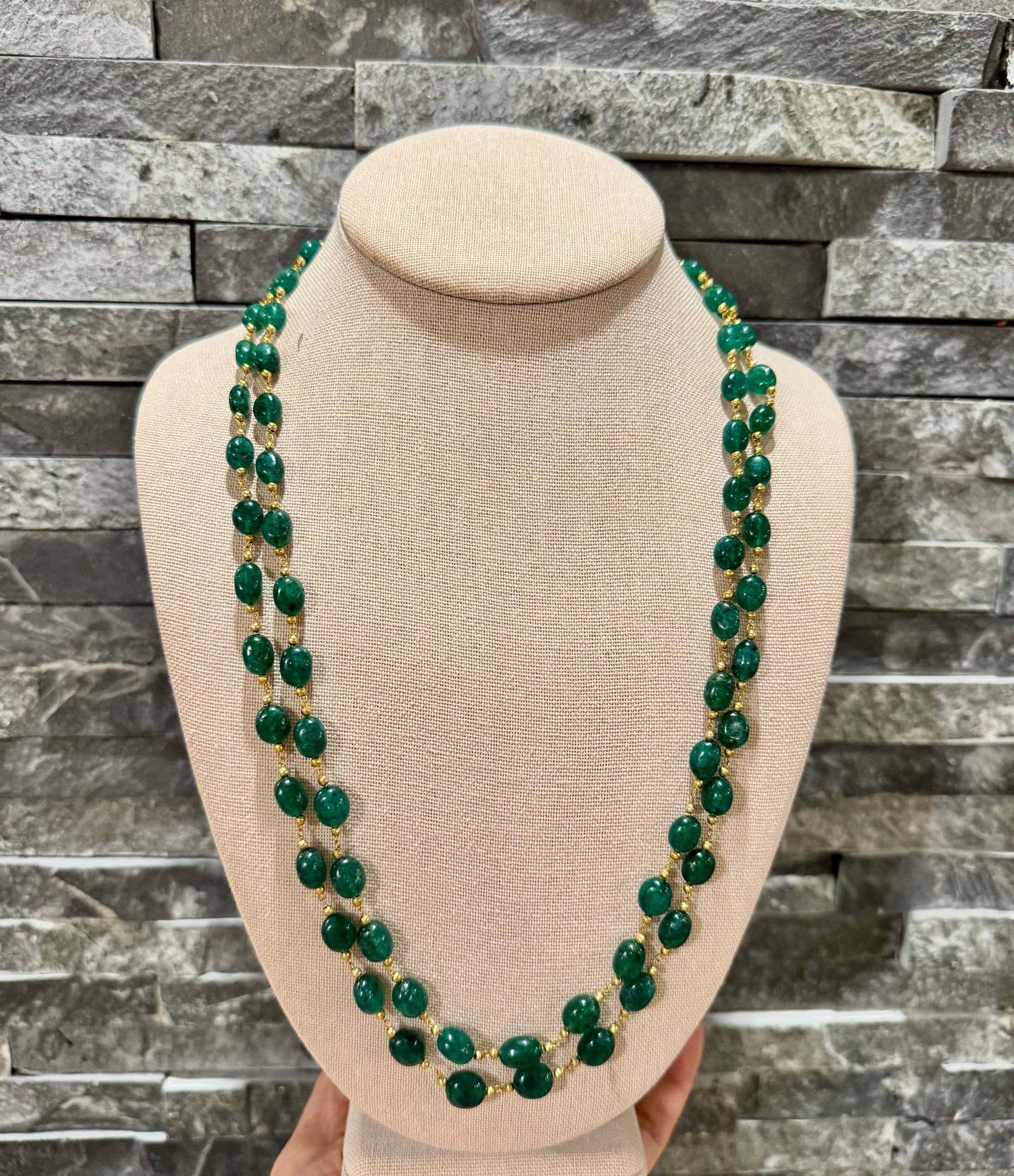 Emerald oval smooth in chain beads 8-9 mm necklace