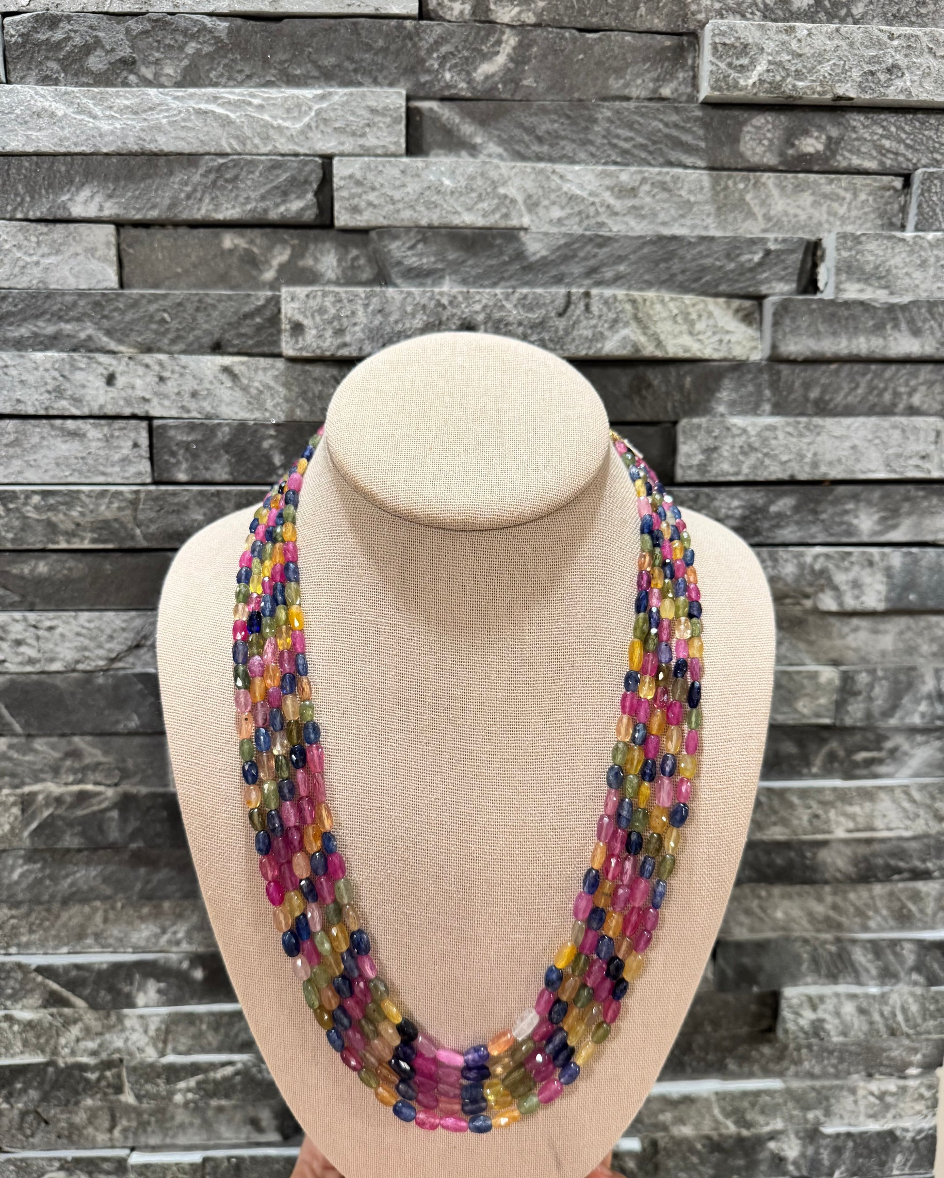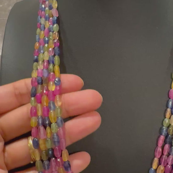 Natural Multi sapphires precious beads cut finish extra fine AAA quality necklace. Amazing shine and made with beautiful multi color cut finish natural sapphire beads.