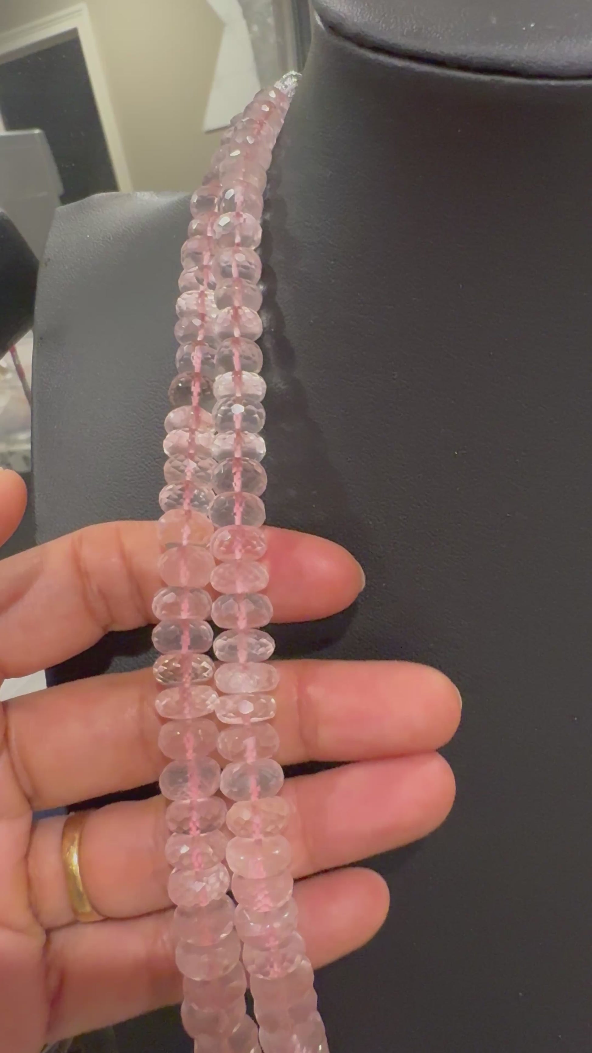 Natural rose quartz cut finish necklace