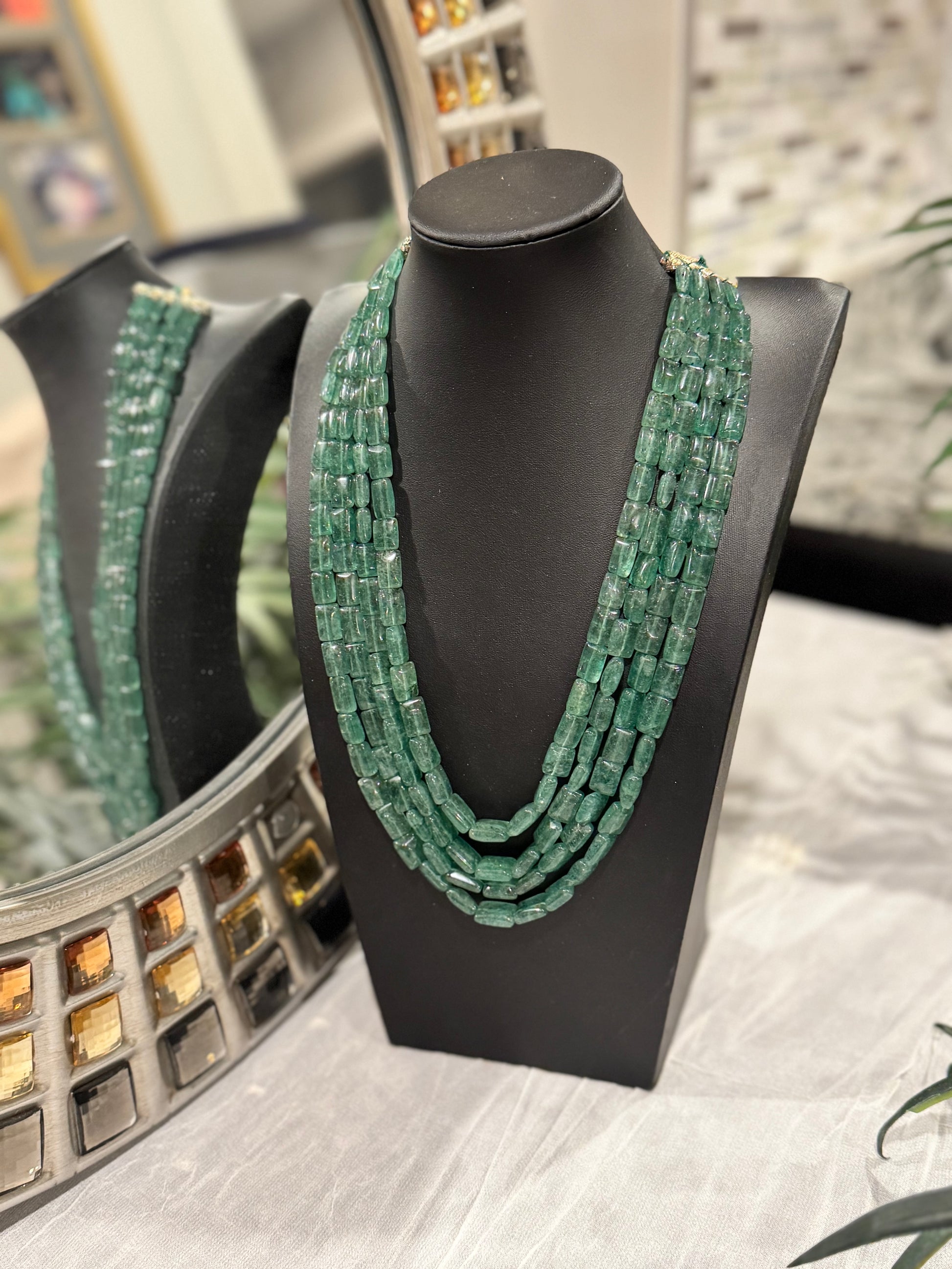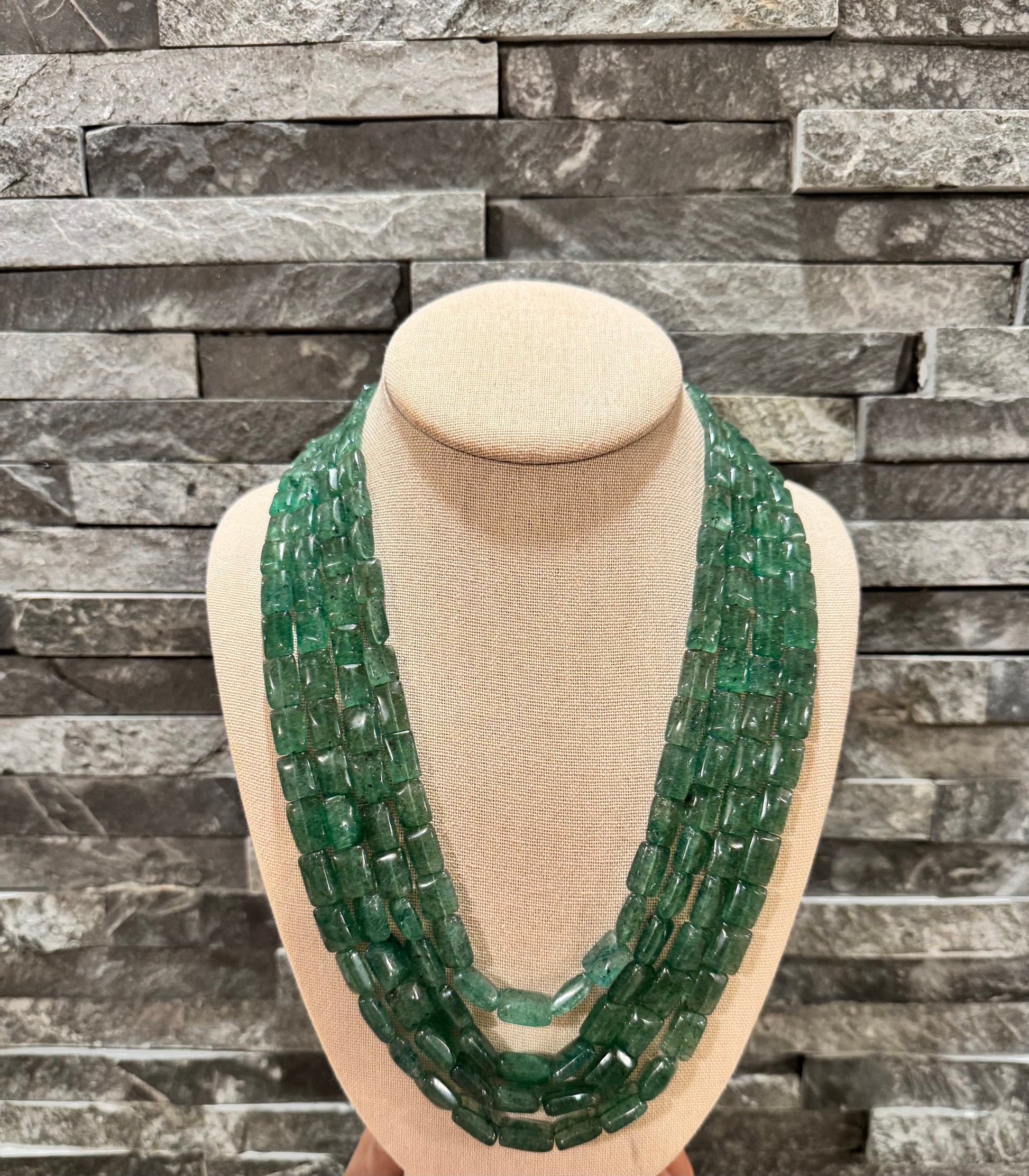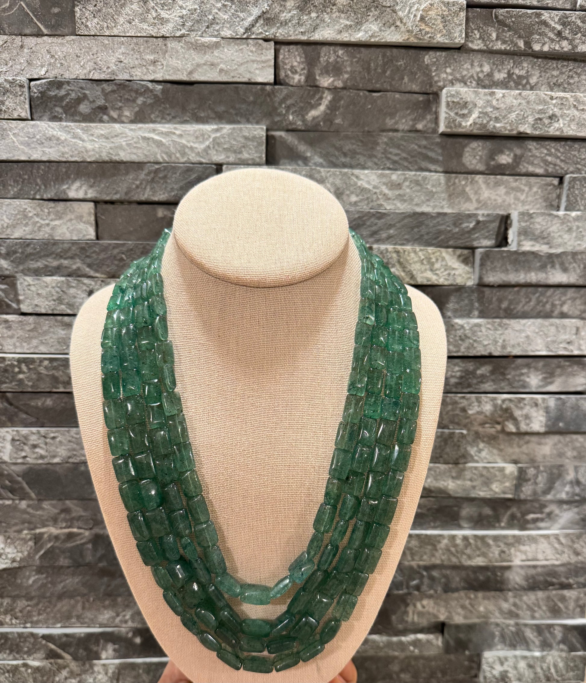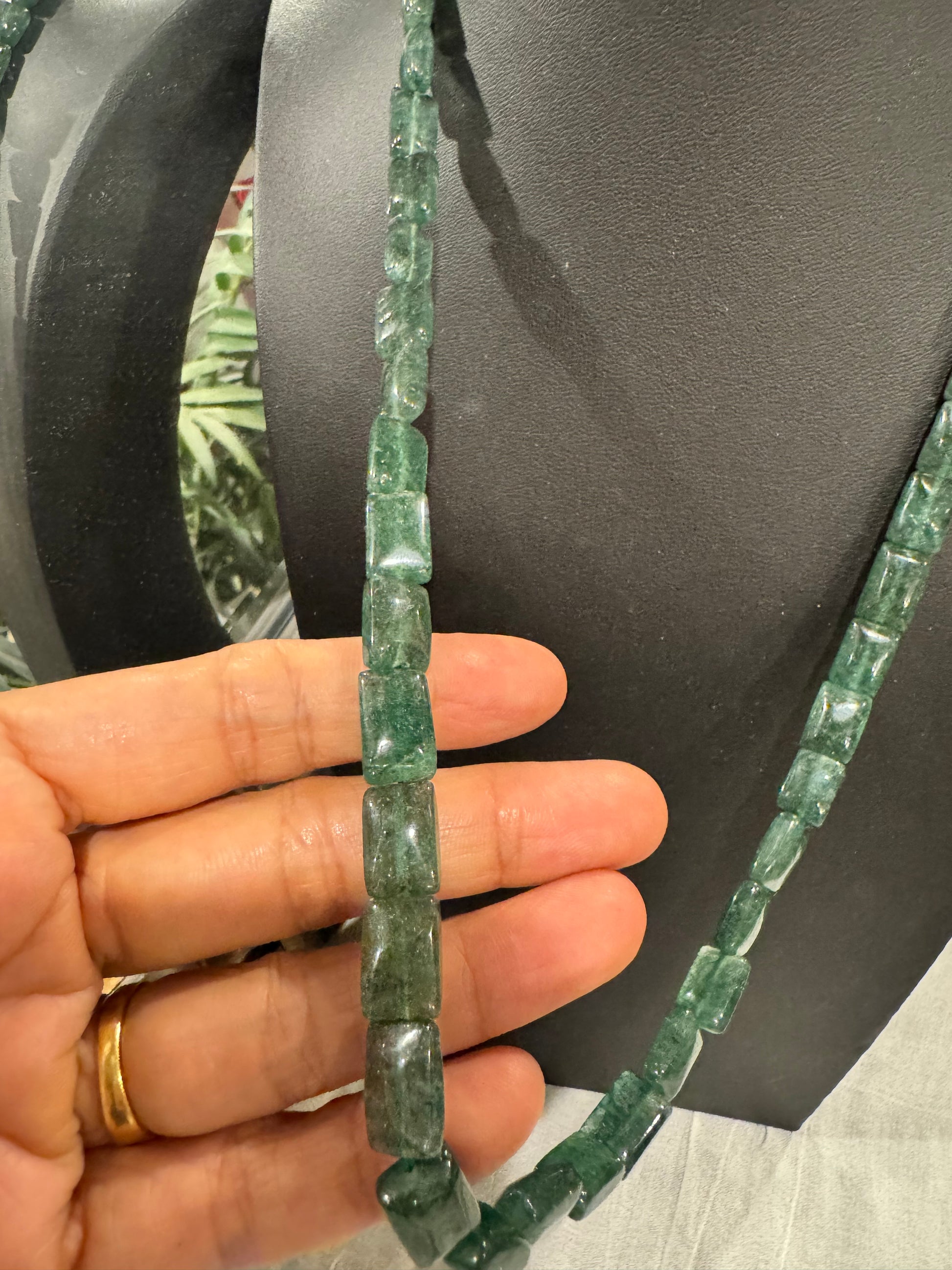 Natural dark green shade Rectangle shape strawberry quartz necklace