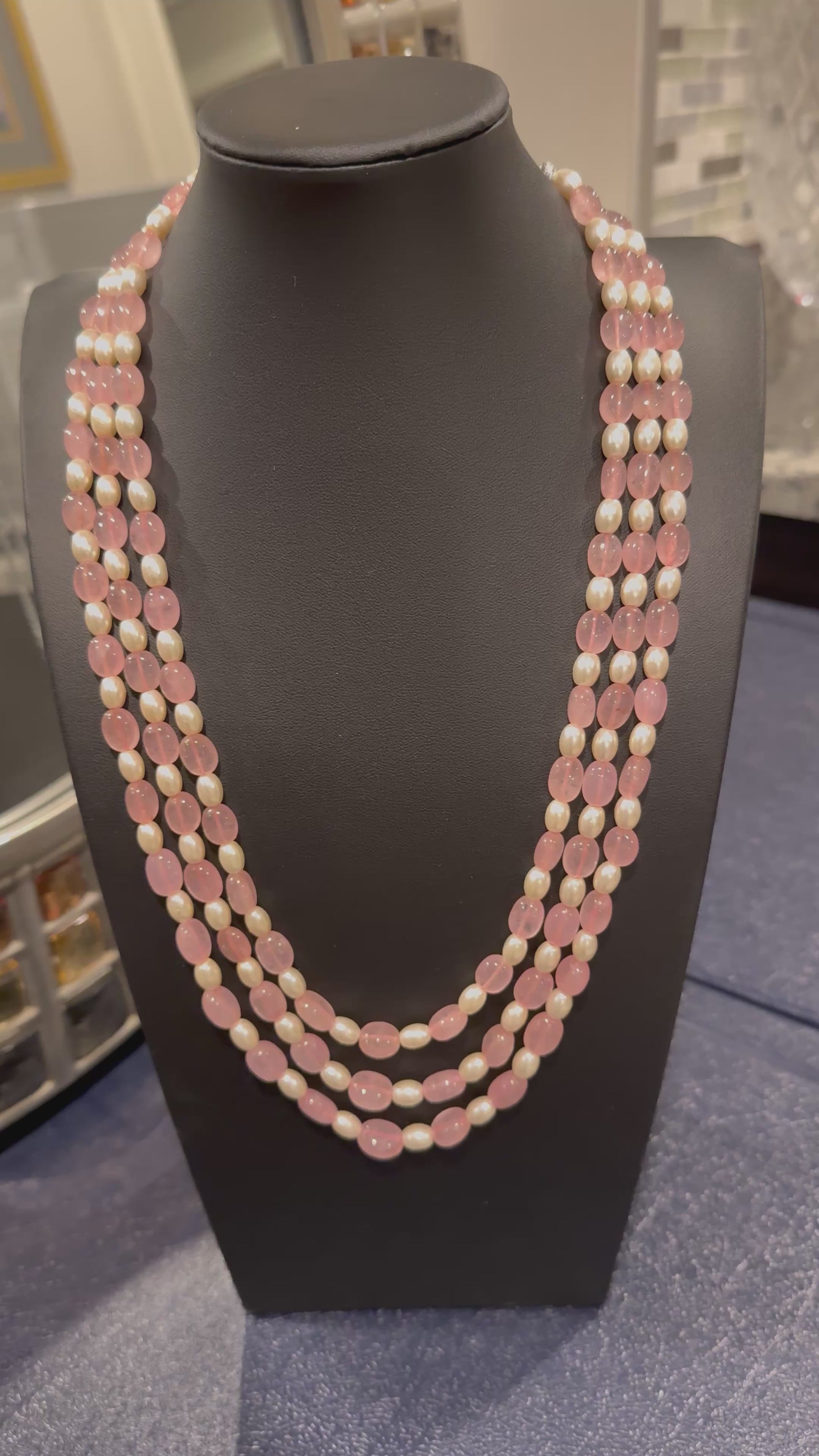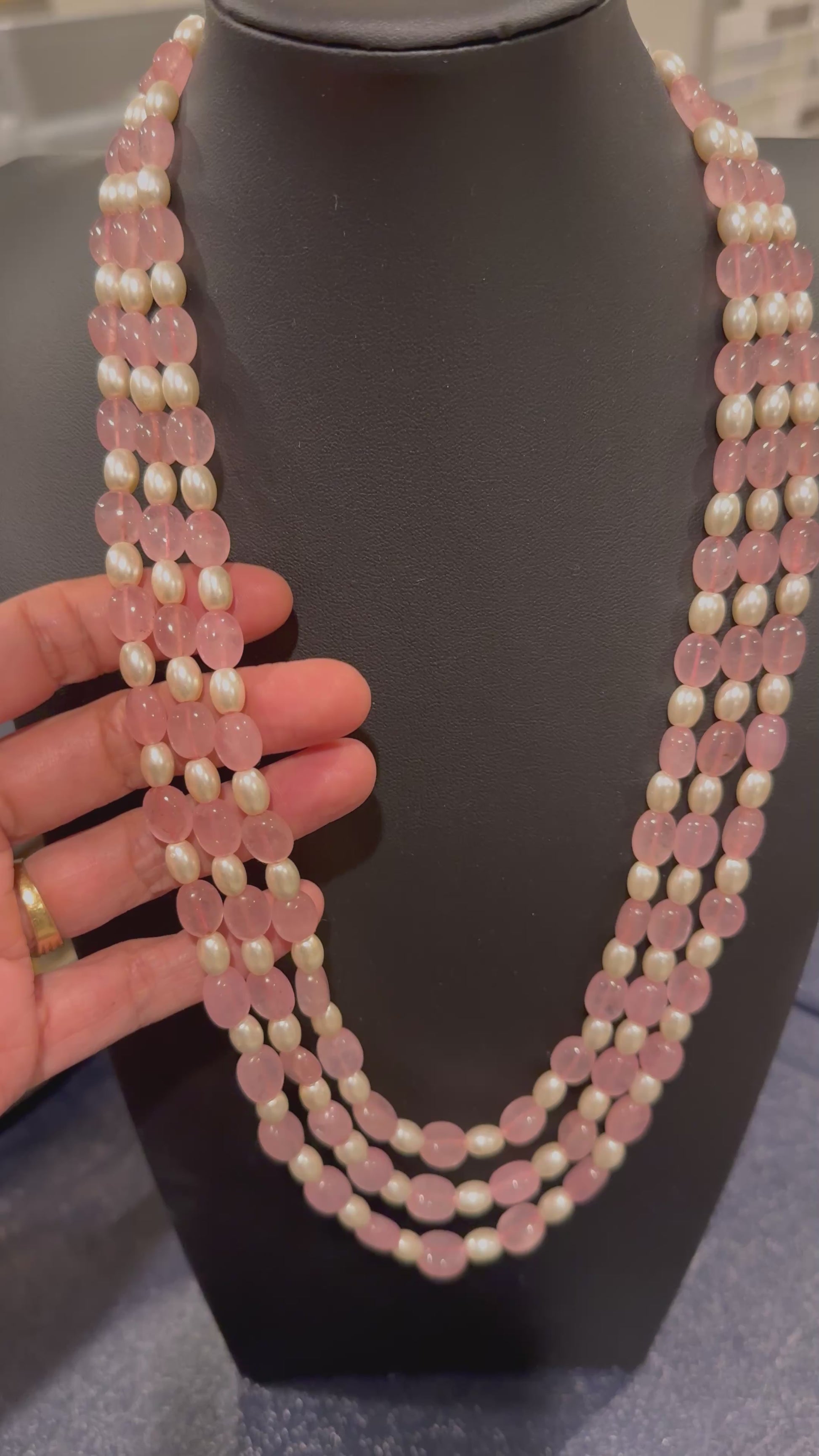 Natural rose quartz and pearls necklace. Comes in 1,2,3,4,5 lines necklace
