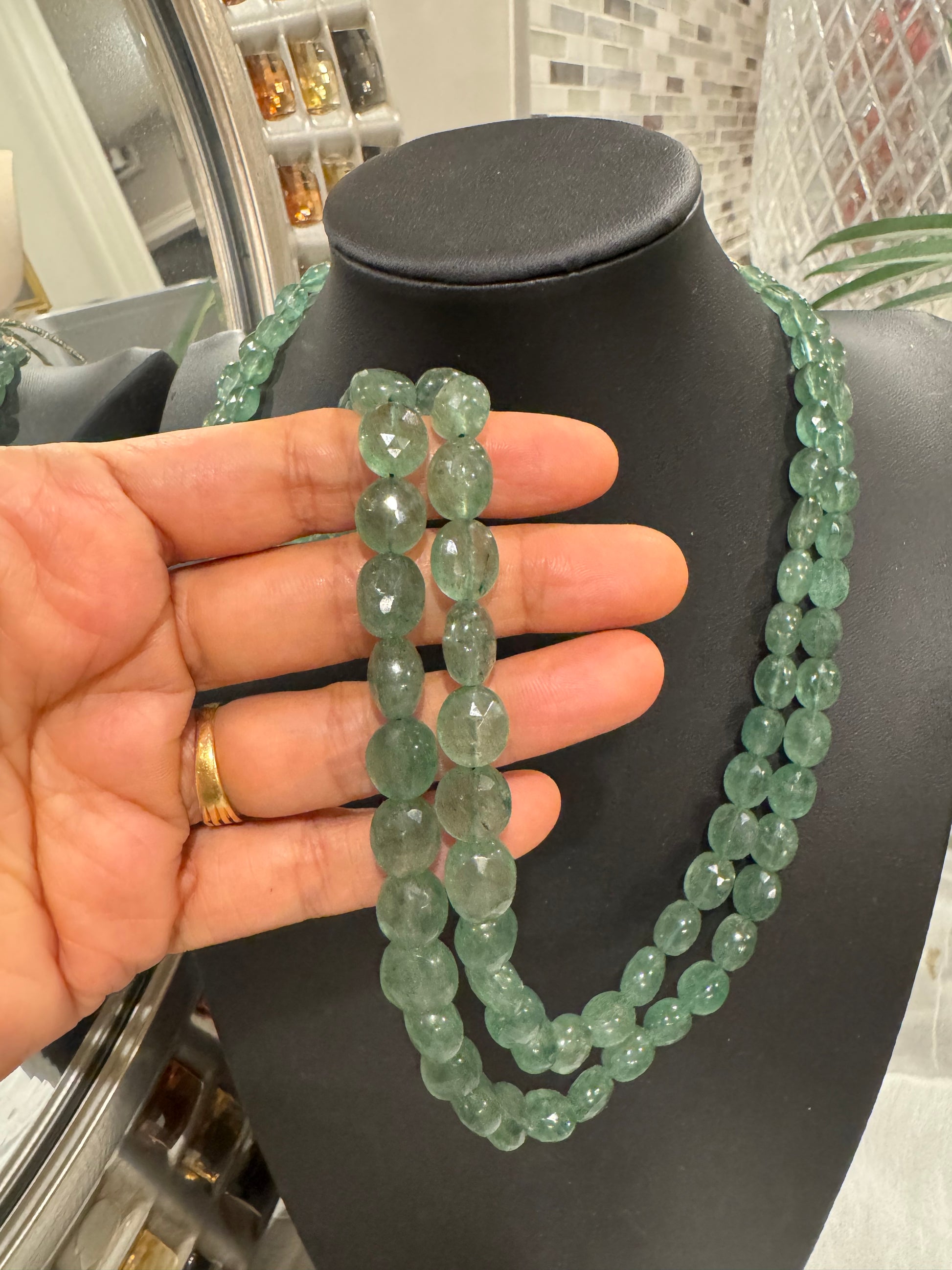 Green Strawberry quartz cut finish necklace