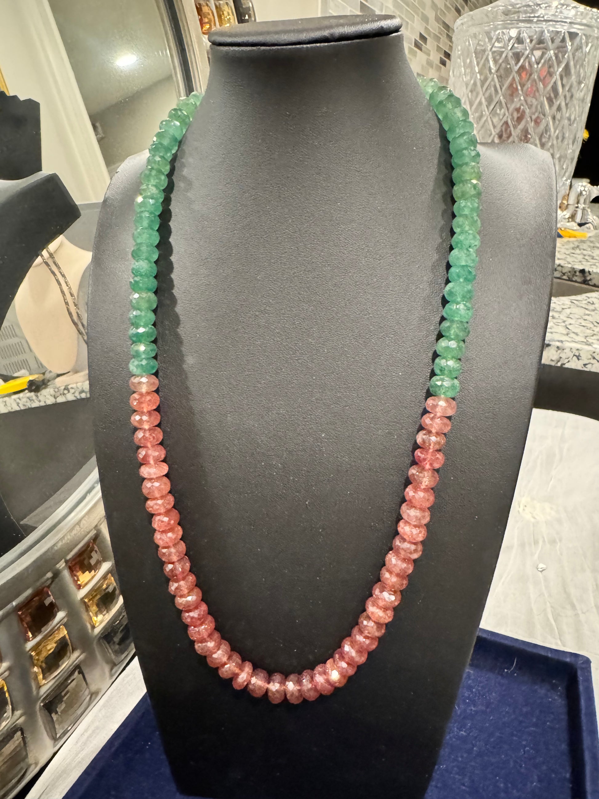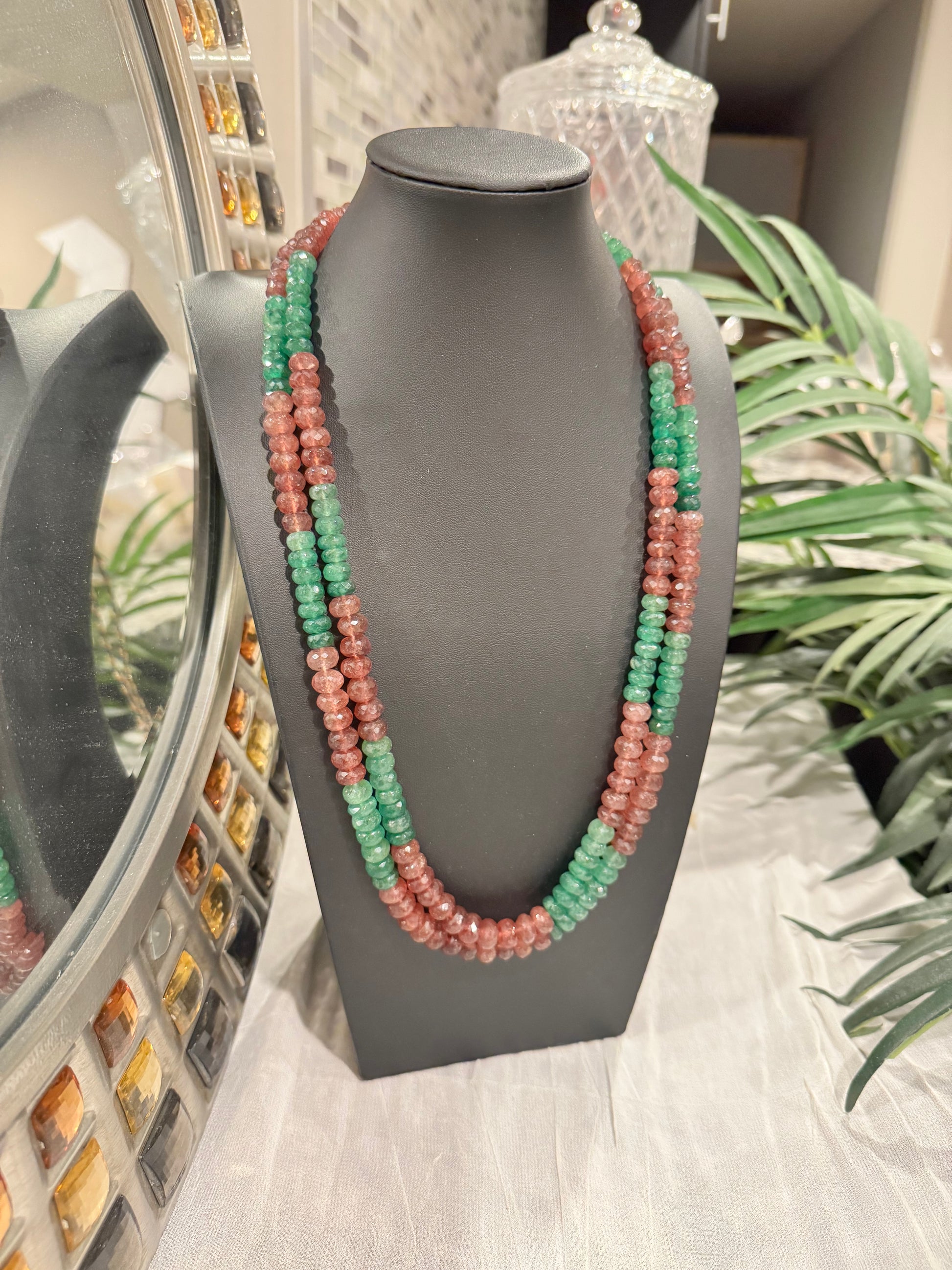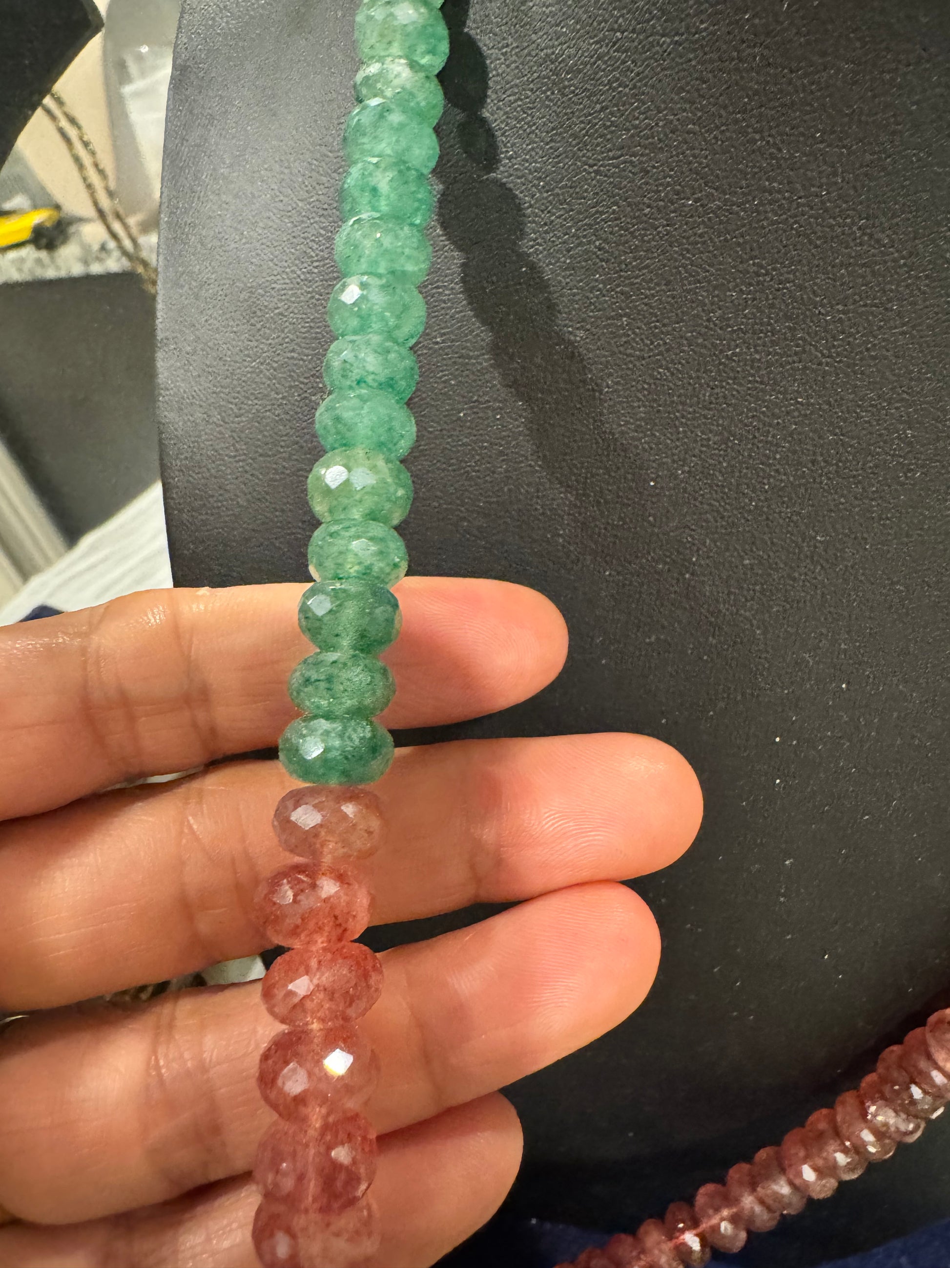 Natural Strawberry quartz cut finish necklace multi Pink and green strawberry beads