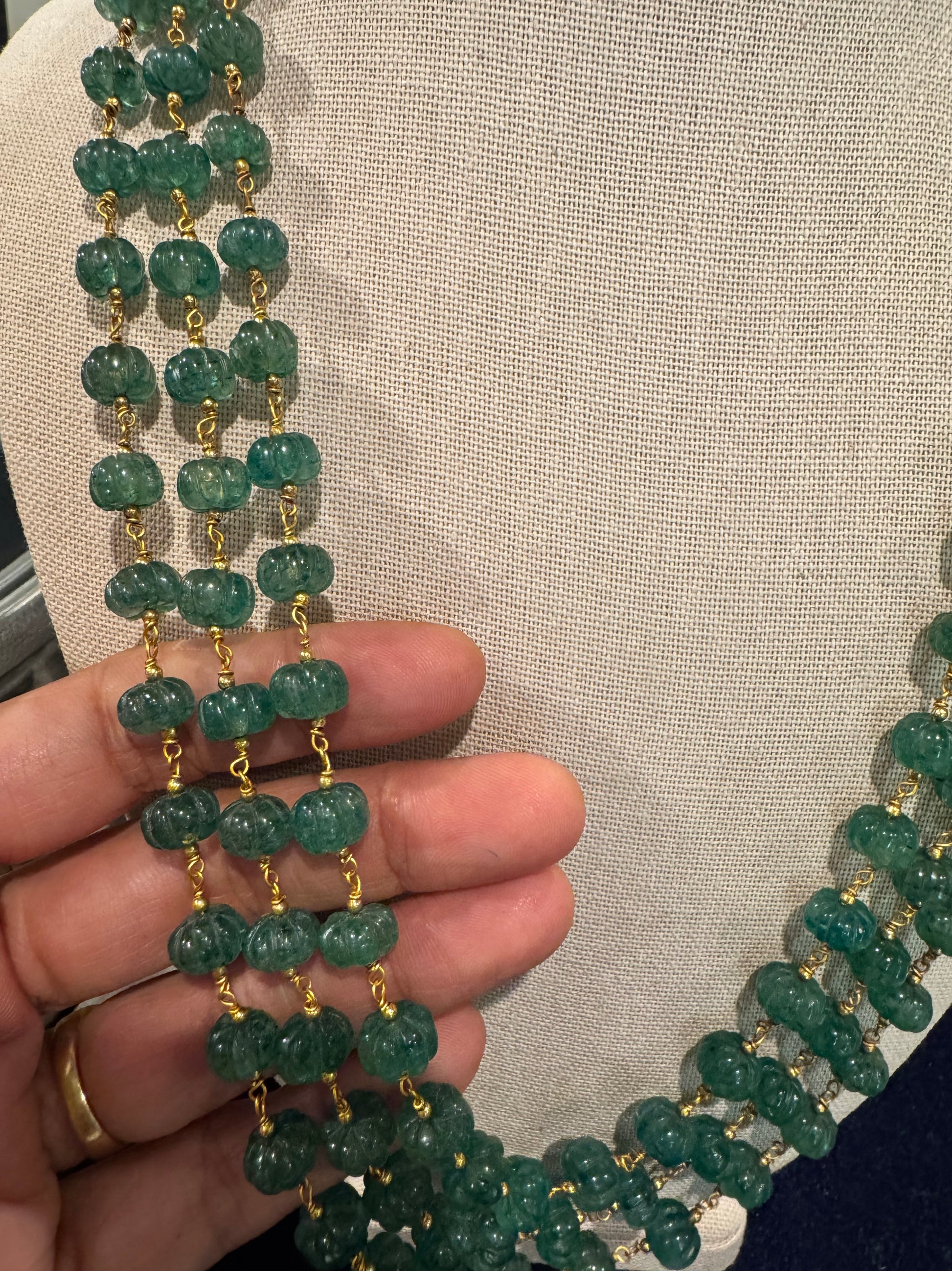 Green Strawberry quartz pumpkin beads in chain necklace